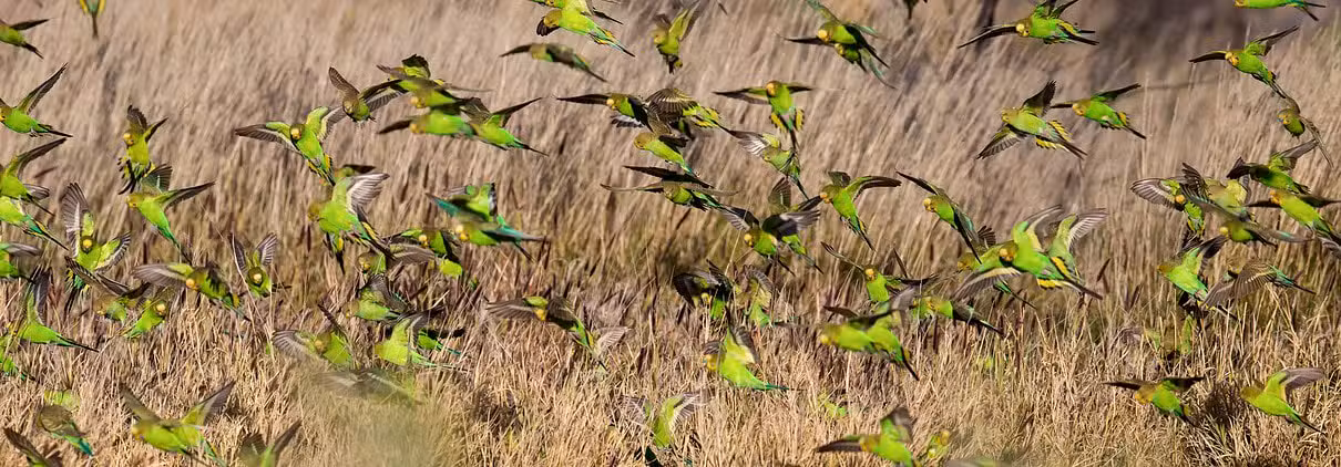 Die australische Landschaft ist wunderschön, aber auch grausam. In Dürreperioden sterben Tausende von Vögeln. Die große Hitze macht es unmöglich, Nahrung und Wasser zu finden, und die wuchernde Vegetation bietet keinen Schutz vor Raubtieren. Außerdem kann die Hitze natürliche Buschbrände auslösen. Vor allem brütende Wellensittichpaare haben es schwer.
