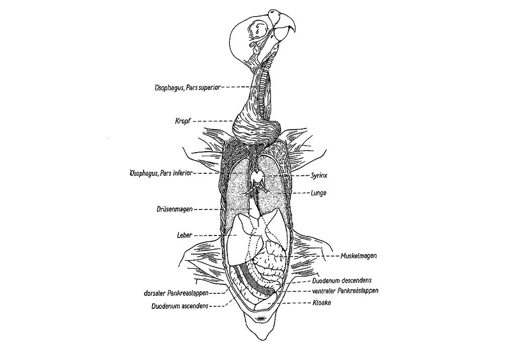 Ein zentrales Element ist der Kropf, der als vorübergehender Nahrungsspeicher dient. Interessanterweise wird der Kropf erst gefüllt, wenn der Magen bereits voll ist. Die Entleerung des Kropfes erfolgt über den Vagusnerv und wird ausgelöst, sobald der Magen leer ist.