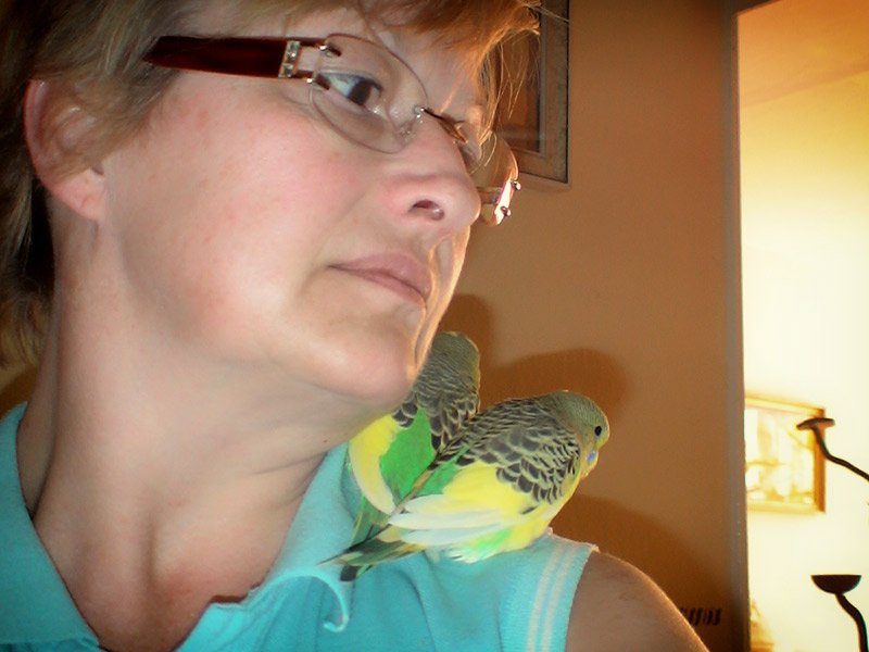 Peti versuche ihre Wellensittiche so naturnahe Lebensbedingungen zu schaffen, wie es eine Wohnungshaltung ermöglicht. Dazu gehört auch die Erfindung der Vogeldusche für Wellensittiche.